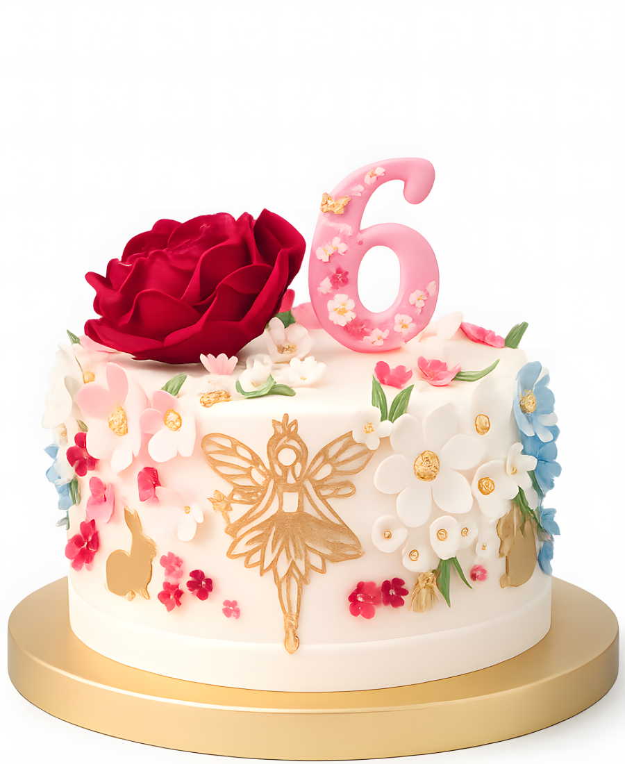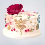 Торт с золотой феей и красной розой