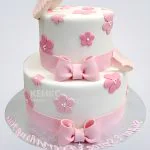 Двухъярусный белый торт с розовыми бантами и бабочками