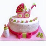 Торт с розовой коляской и бутылочкой для молока