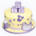 Этот яркий торт словно сошел со страниц детской книжки! Основной фон выполнен в солнечном желтом цвете, который создает радостное настроение. Фиолетовые кубики с белыми цифрами и буквами добавляют игривости и интерактивности. Белые облачка и желтые звездочки разбросаны по поверхности, как элементы веселого пазла. Сочетание насыщенных оттенков и геометрических форм делает торт по-настоящему запоминающимся.