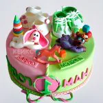 Розово-зеленый торт с тапочками и игрушками