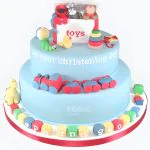 Яркий торт с игрушками и кубиками с буквой