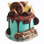 Голубой торт с шоколадными пончиками