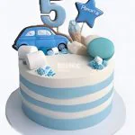 Этот яркий детский торт создан для настоящего праздника! Круглая форма с пышными кремовыми волнами выглядит по-настоящему аппетитно. Украшение в виде игрушечной машинки и разноцветных конфет сразу привлекает внимание. Сочетание нежно-голубого, белого и ярких акцентов создает радостное настроение. Простые, но выразительные детали делают торт центром внимания на любом празднике.