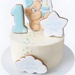 Торт для мальчика без мастики с метрикой и фигуркой мишки
