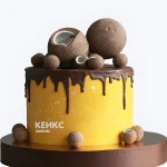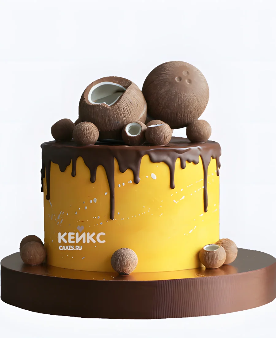 Торт для мальчика без мастики с шоколадными подтеками и кокосом