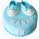 Голубой торт с кедами и следами от ног