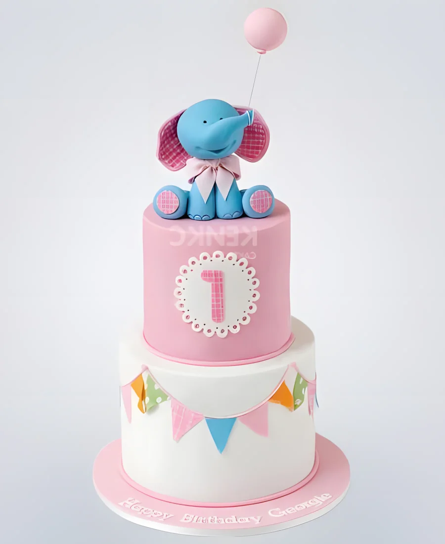 Торт с голубым слоненком и розовым шаром
