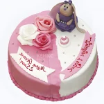 Двойной бело-розовый торт с надписью