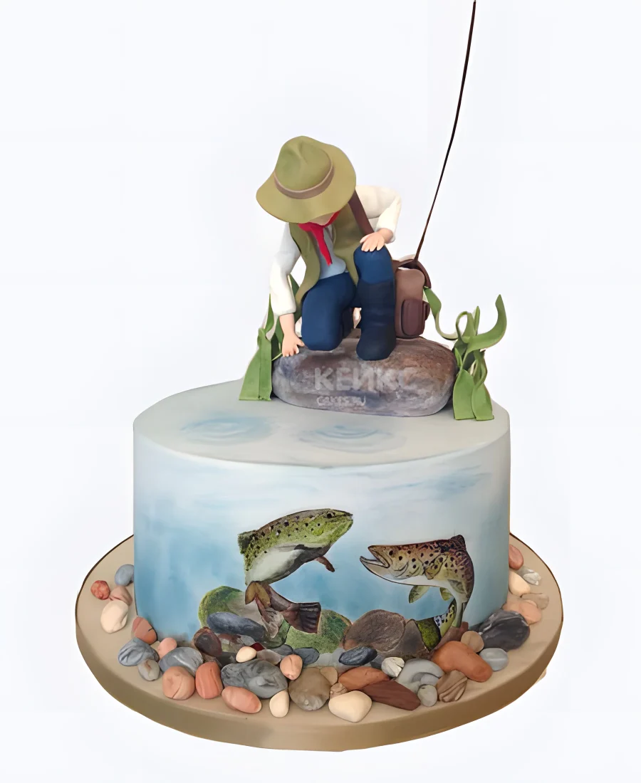 Торт с рыбаком и подводным миром