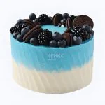 Нежно-голубой торт с ягодами и печеньем