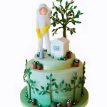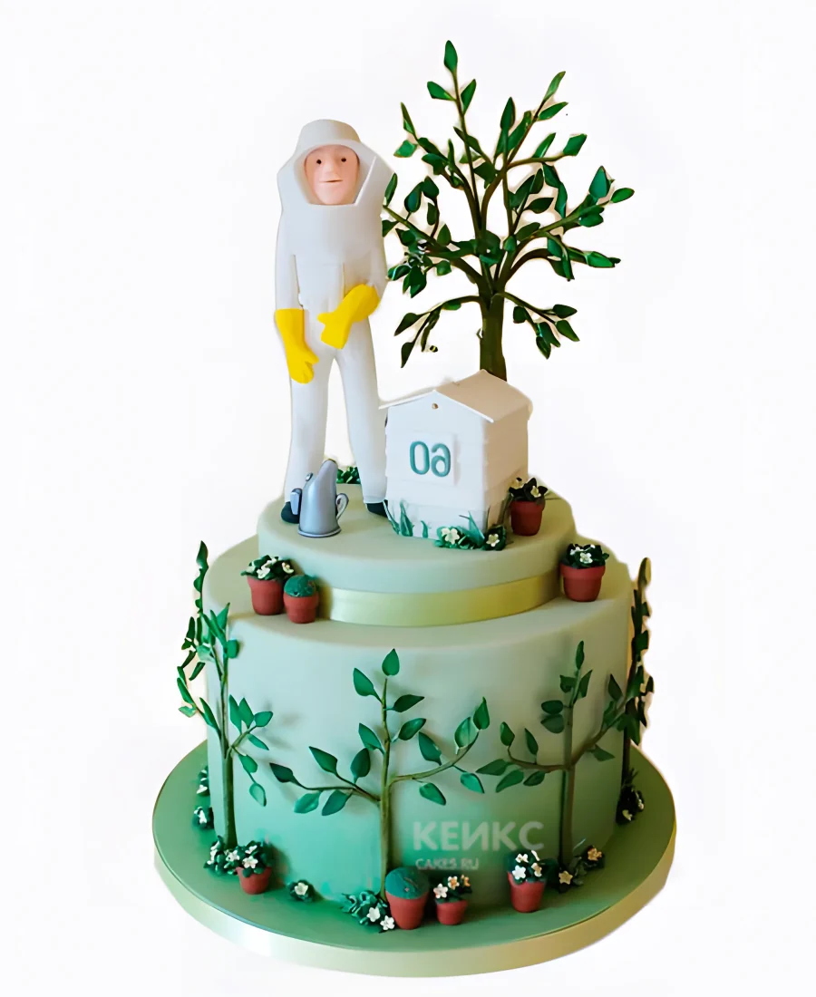 Торт для пчеловода с деревьями и фигуркой мужчины