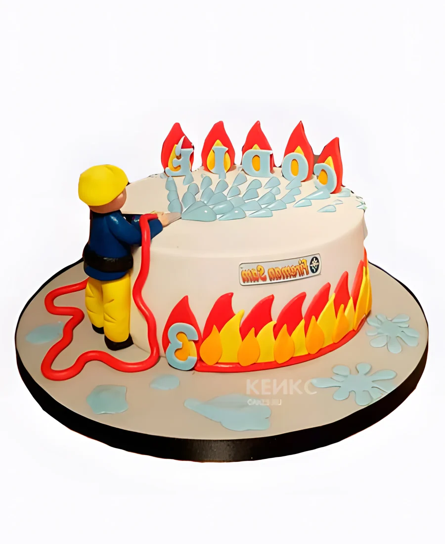 Мастичный торт для пожарного с фигуркой человека