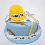 Синий торт с каской и чертежом для строителя