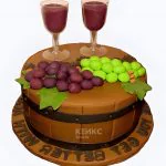 Торт в виде бочки с виноградом и бокалами