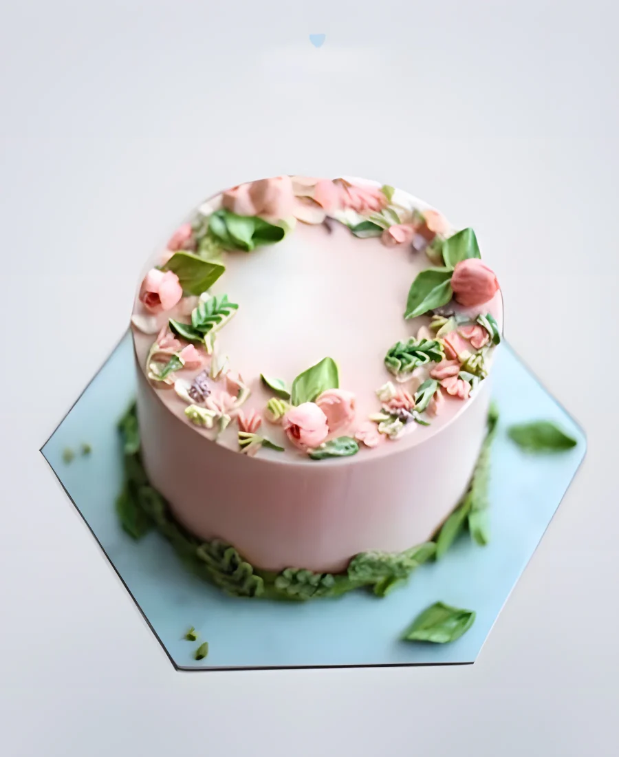 Нежно-розовый бенто торт с цветами