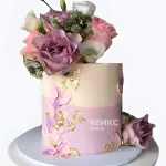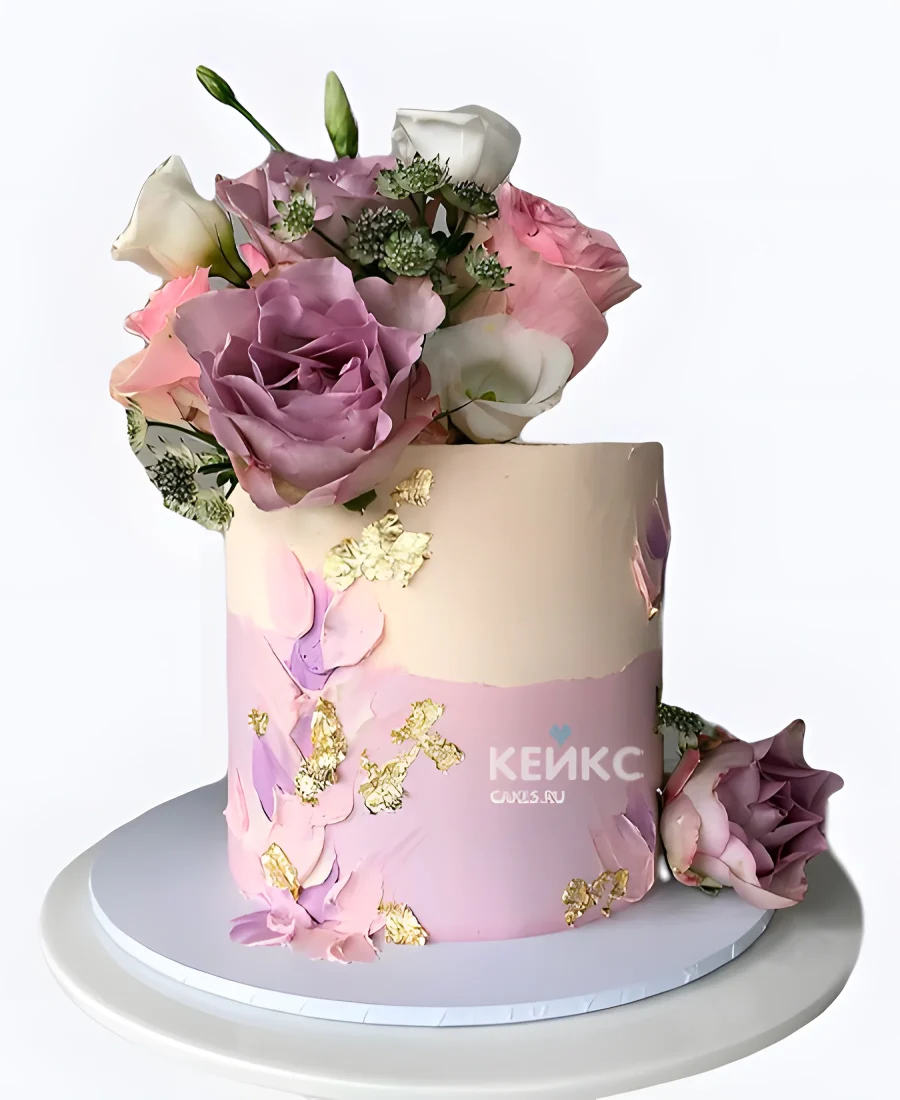 Торт для женщины с букетом и декоративными мазками