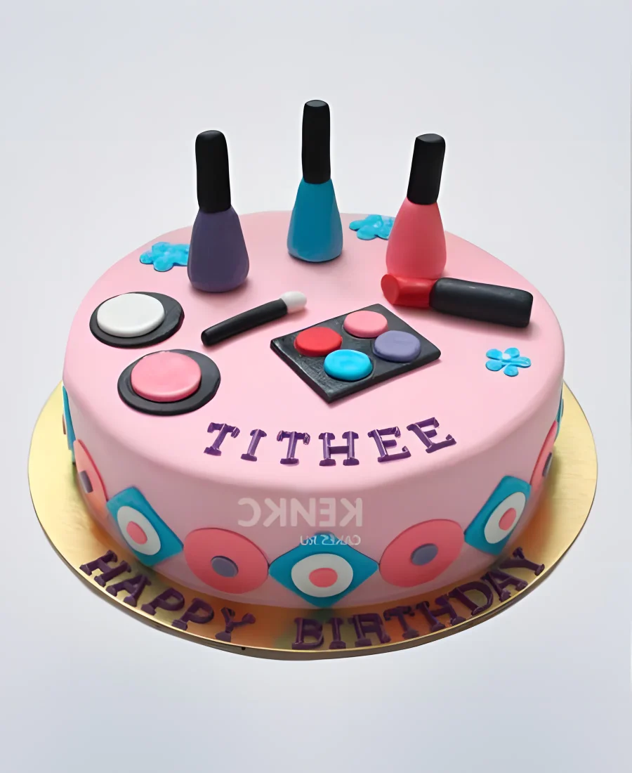 Розово-голубой торт с косметикой