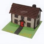 Этот торт выглядит как уютный сказочный домик, окруженный ярко-зеленой травой. Круглая форма создает ощущение гармонии, а детализированные элементы фасада — окошки, дверь и крыша — добавляют теплоты и домашнего уюта. Зеленая трава по краям торта напоминает летний луг, придавая композиции свежесть и натуральность. Игра текстур и оттенков делает торт живым и привлекательным, словно сошедшим со страниц детской книжки.