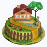 Уютный торт домик в деревне из мастики