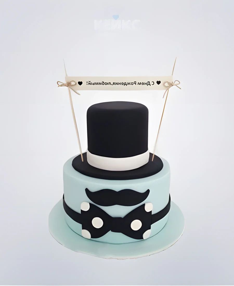 Торт голубой с усами и шляпой