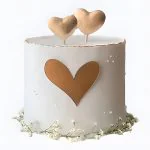 Нежный круглый торт в пастельных тонах украшен изящной композицией из двух золотых сердец. Мягкие кремовые волны создают воздушную текстуру поверхности, а тонкие цветочные элементы добавляют торжественности. Золотые акценты гармонично сочетаются с основной светлой гаммой, создавая романтичное настроение. Элегантная простота декора подчеркивает трогательную символику двух сердец, сливающихся в единую гармоничную композицию.