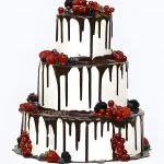 Этот нежный двухъярусный торт, украшенный свежей клубникой и сливками, идеально подойдет для вашего дня рождения!