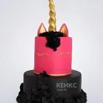 Черно-розовый торт с золотым единорогом