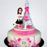 Торт с девушкой и Эйфелевой башней ярко-розовый