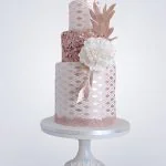 Эксклюзивный торт бело-бронзовый с цветком на день рождения