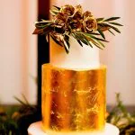 Эксклюзивный торт бело-золотой с цветами на день рождения