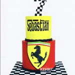 Яркий двухъярусный торт в стиле Ferrari мгновенно привлекает внимание. Верхний ярус украшен динамичной фотопечатью с логотипом команды и номером 7, выполненным в фирменном красном цвете. Глянцевая мастика создает эффект гоночного кузова, а контрастные белые полосы добавляют спортивный шик. Композиция передает энергию скорости и праздничного настроения, словно застывший момент триумфа на трассе.