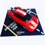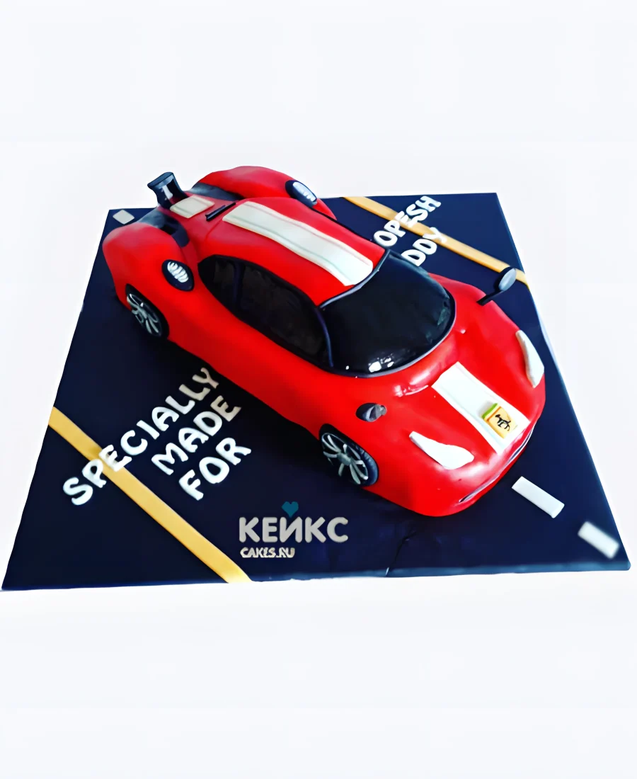 Торт Феррари в виде красной машины с белой полосой