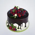 Этот аппетитный торт станет отличным украшением праздничного стола или запоминающимся подарком для любимого человека! Воздушный бисквит смазан ванильным кремом, а сверху торт украшен белой глазурью и ягодами малины.