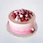 Этот небольшой розовый торт приготовлен полностью из натуральных ингредиентов и содержит много свежих фруктов. Он украшен свежими ягодами малины и клубники, которые будут таять у вас во рту, а сверху еще покрыт шоколадной глазурью.
