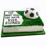 Торт в виде футбольного поля с мячом