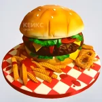 Сочный 3D торт Гамбургер с картофелем и луковыми кольцами