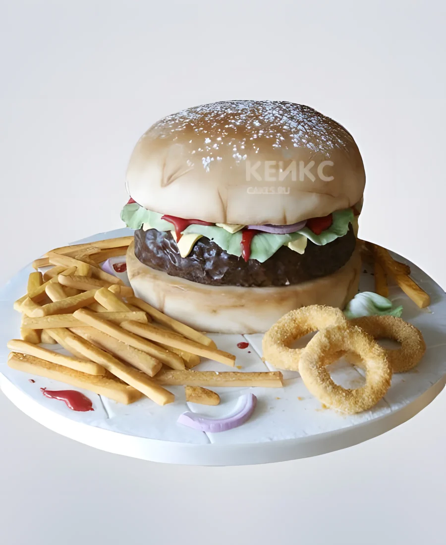 Торт 3D гамбургер с луковыми кольцами