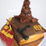 Этот волшебный торт вдохновлен вселенной Гарри Поттера. Он выполнен в виде раскрытой книги с детализированными страницами и корешком. На одной из сторон красуется знаменитая Распределяющая шляпа, выполненная из мастики с точной проработкой складок и швов. Торт украшен золотистыми элементами, символизирующими магию Хогвартса, и мелкими деталями, напоминающими о волшебных артефактах. Идеальный выбор для поклонников саги!
