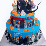 Торт Годзилла город в огне двухъярусный