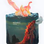 Этот торт впечатляет своей динамичной композицией! Могучий Годзилла вздымается над городским пейзажем, извергая яркий объемный огонь оранжево-красных оттенков. Миниатюрные небоскребы создают эффект масштаба, а контраст темного силуэта монстра со светлым фоном добавляет драматизма. Кажется, будто застыл момент эпической битвы — такой торт точно станет центром внимания на любом мероприятии.
