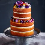 Двухъярусный торт с открытыми коржами создает эффектную текстуру и глубину. Нежные цветы пастельных оттенков мягко обрамляют ярусы, добавляя воздушности композиции. Голубые акценты гармонично сочетаются с кремовыми тонами, создавая легкую мечтательную атмосферу. Такой торт станет центром внимания на празднике, передавая ощущение нежности и праздничного настроения через изящные детали и продуманную цветовую палитру.