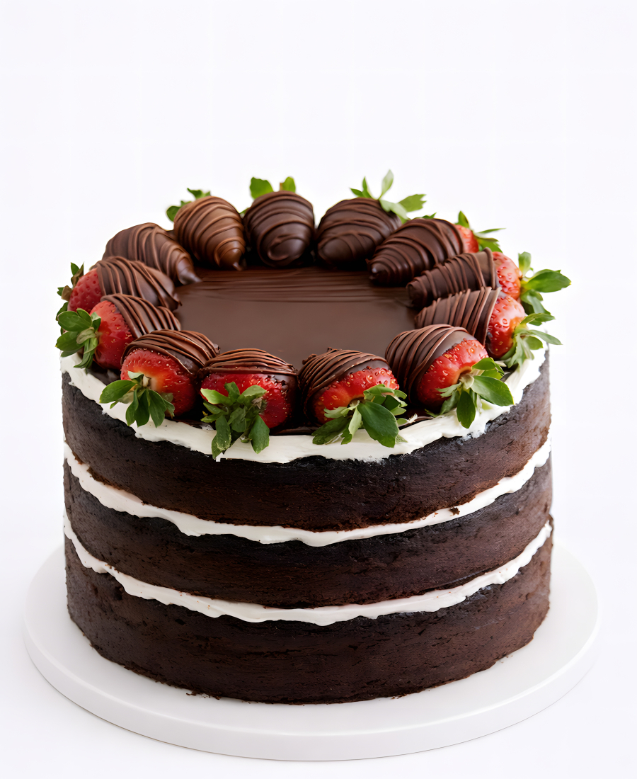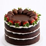Торт с открытыми шоколадными коржами и клубникой