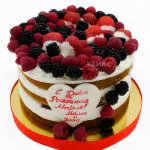 Этот торт приковывает взгляд своей смелой концепцией открытых коржей. Голые слои бисквита создают эффектную текстуру, контрастируя с сочными ягодами ярко-красного оттенка. Лаконичная эстетика торта передает настроение современной натуральности и простоты. Каждая деталь выглядит намеренно несовершенной, что придает десерту особый шарм и визуальную глубину.