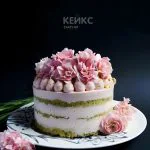 Нежный торт с розовым кремом, живыми цветами и открытыми коржами