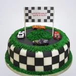 Круглый торт Гонки в виде трассы с машинками и плакатами