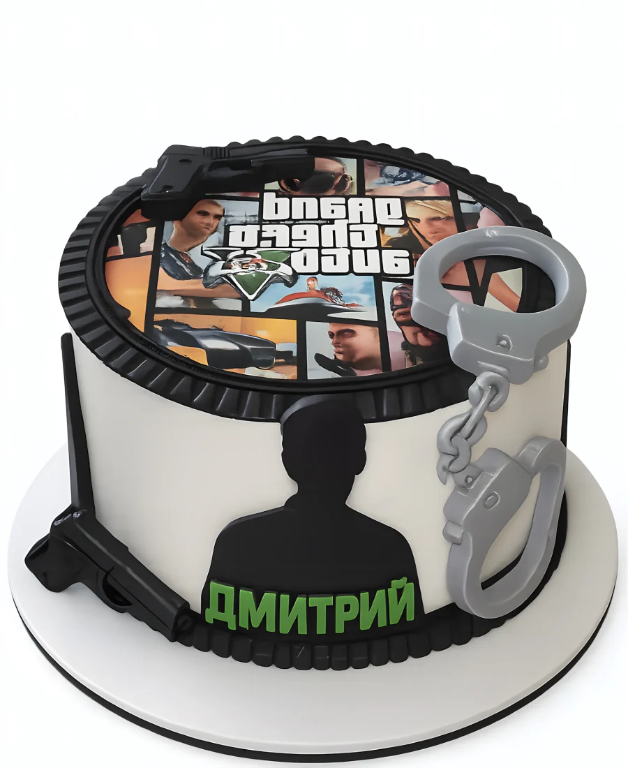 Торт GTA с фотопечатью и наручниками