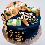Торт с логотипом GTA и деньгами