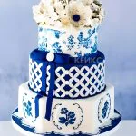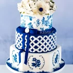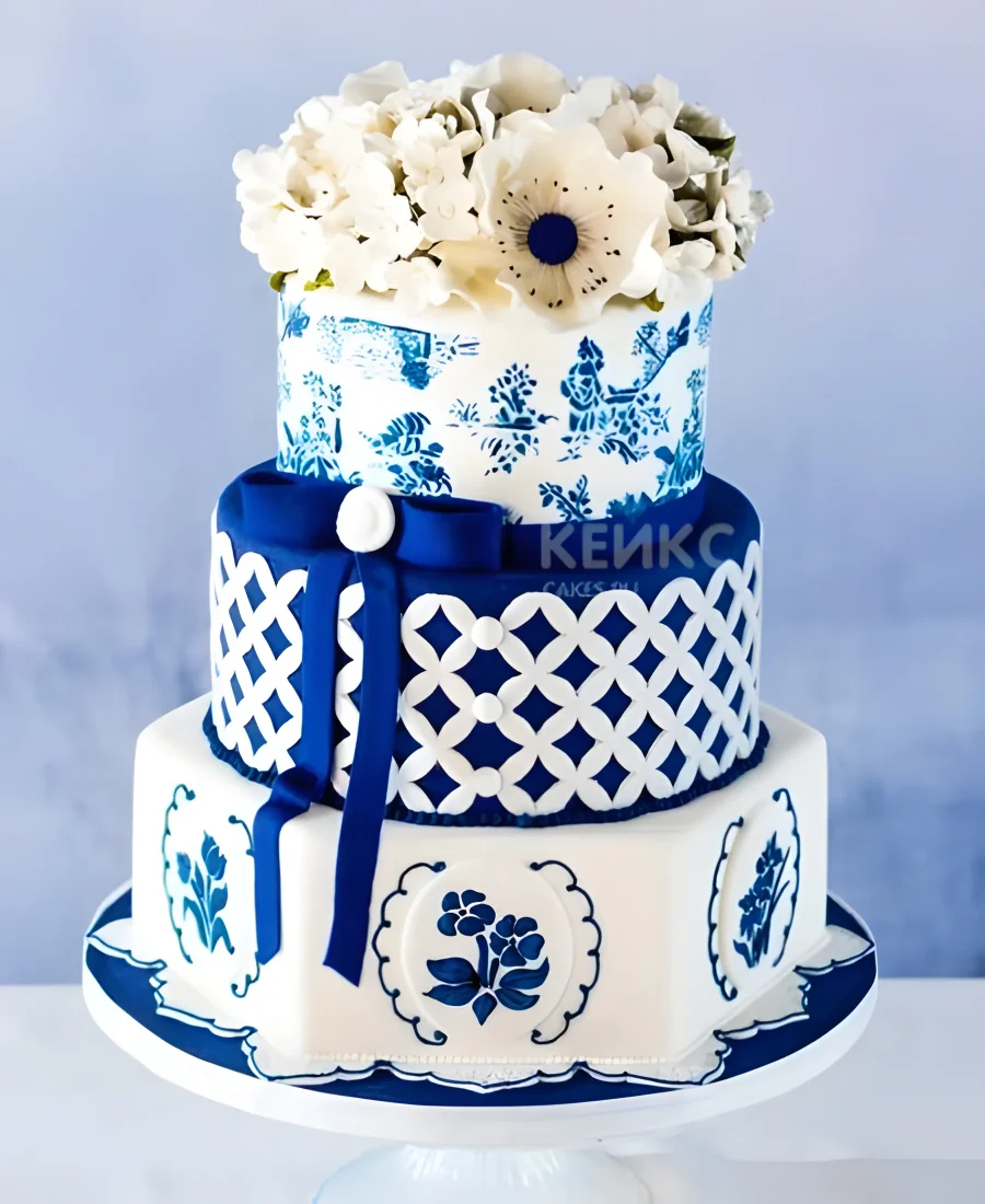 Шикарный торт в стиле гжель с цветами