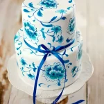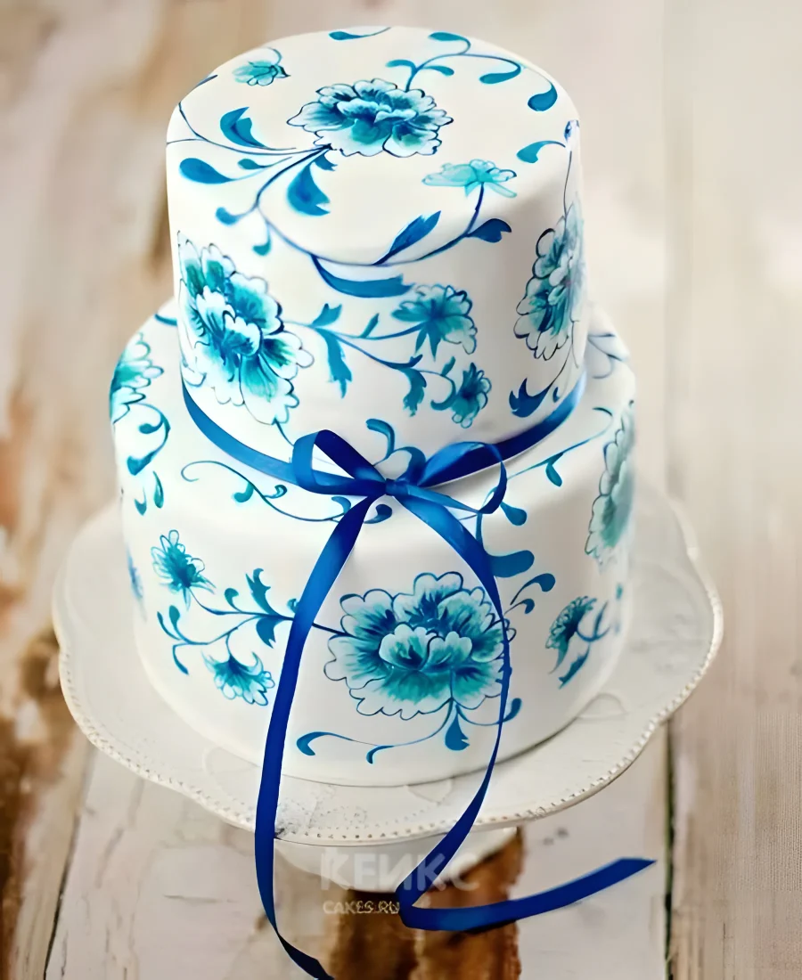 Торт в стиле гжель с атласной лентой
